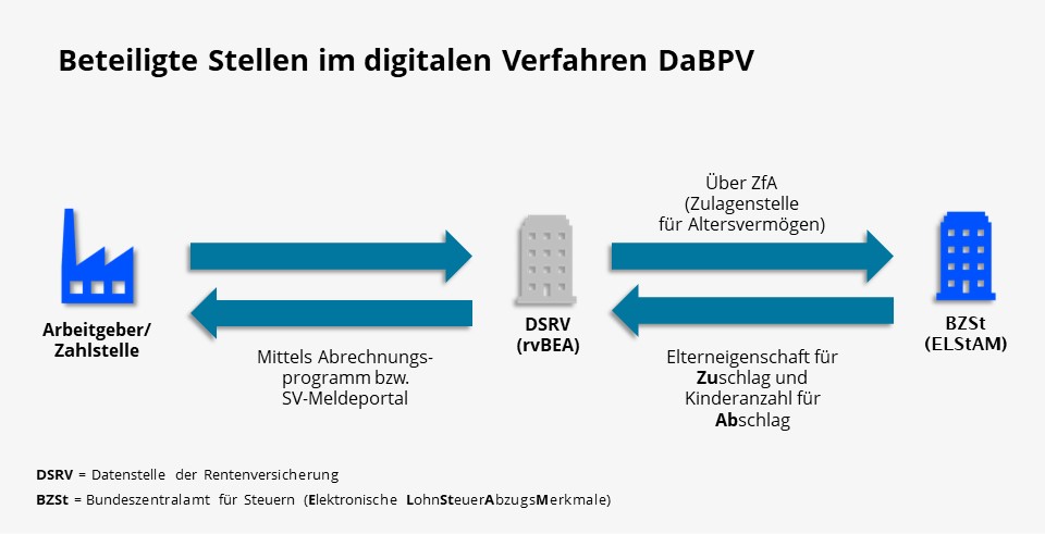 Arbeitgeber und Zahlstellen sind gesetzlich berechtigt, die für steuerliche Zwecke erhobene IdNr sowie das Geburtsdatum des Arbeitnehmers bzw. Versorgungsempfängers für die sozialversicherungsrechtlichen Zwecke des DaBPV zu nutzen.