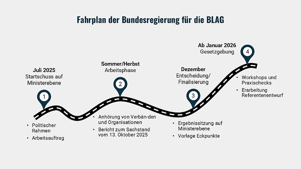 In einer gemeinsamen Sitzung hat sich am 7. Juli 2025 die Bund-Länder-Arbeitsgruppe (BLAG) in Berlin konstituiert und sich auf das weitere Vorgehen für eine Reform der Pflegeversicherung verständigt. Bis Ende des Jahres soll die Arbeitsgruppe „Zukunftspakt Pflege“ gemeinsame Eckpunkte vorlegen, die im kommenden Jahr in ein Gesetzgebungsverfahren einfließen. Hierzu wurden zwei Facharbeitsgruppen gebildet. Alle Maßnahmen stehen laut Koalitionsvertrag unter Finanzierungsvorbehalt.